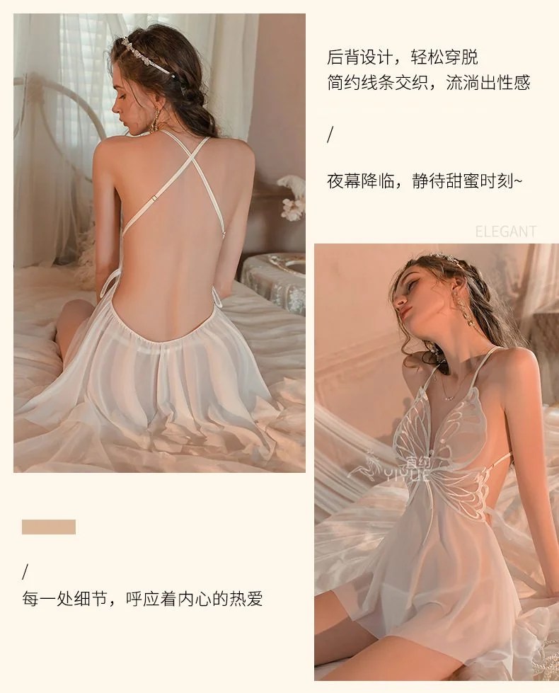 Home Sleepwear & Night Dress China Imported Luxury ButterFly Night Dress – White