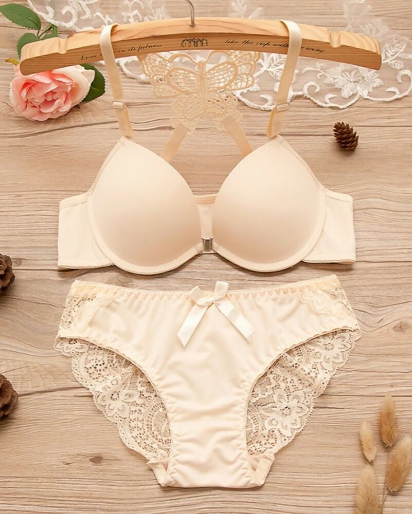 Home China Bra Panty Set Front Open Butterfly Bra Panty Set – Beige