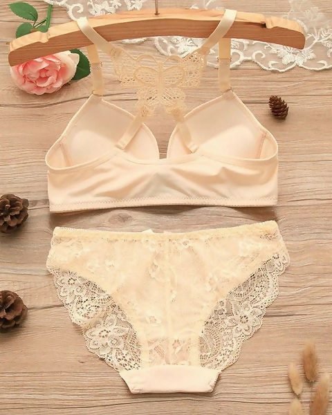 Front Open Butterfly Bra Panty Set – Beige