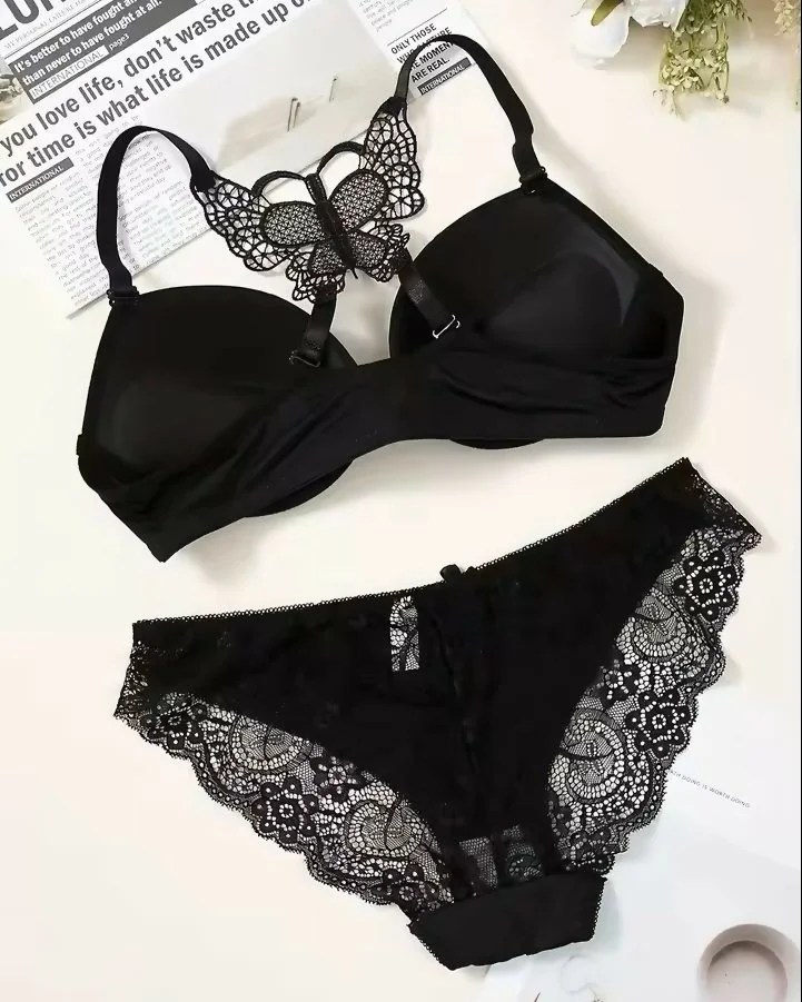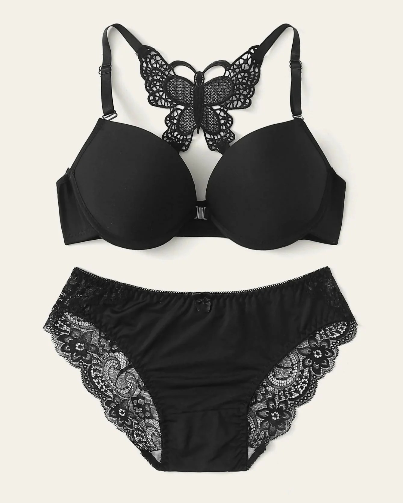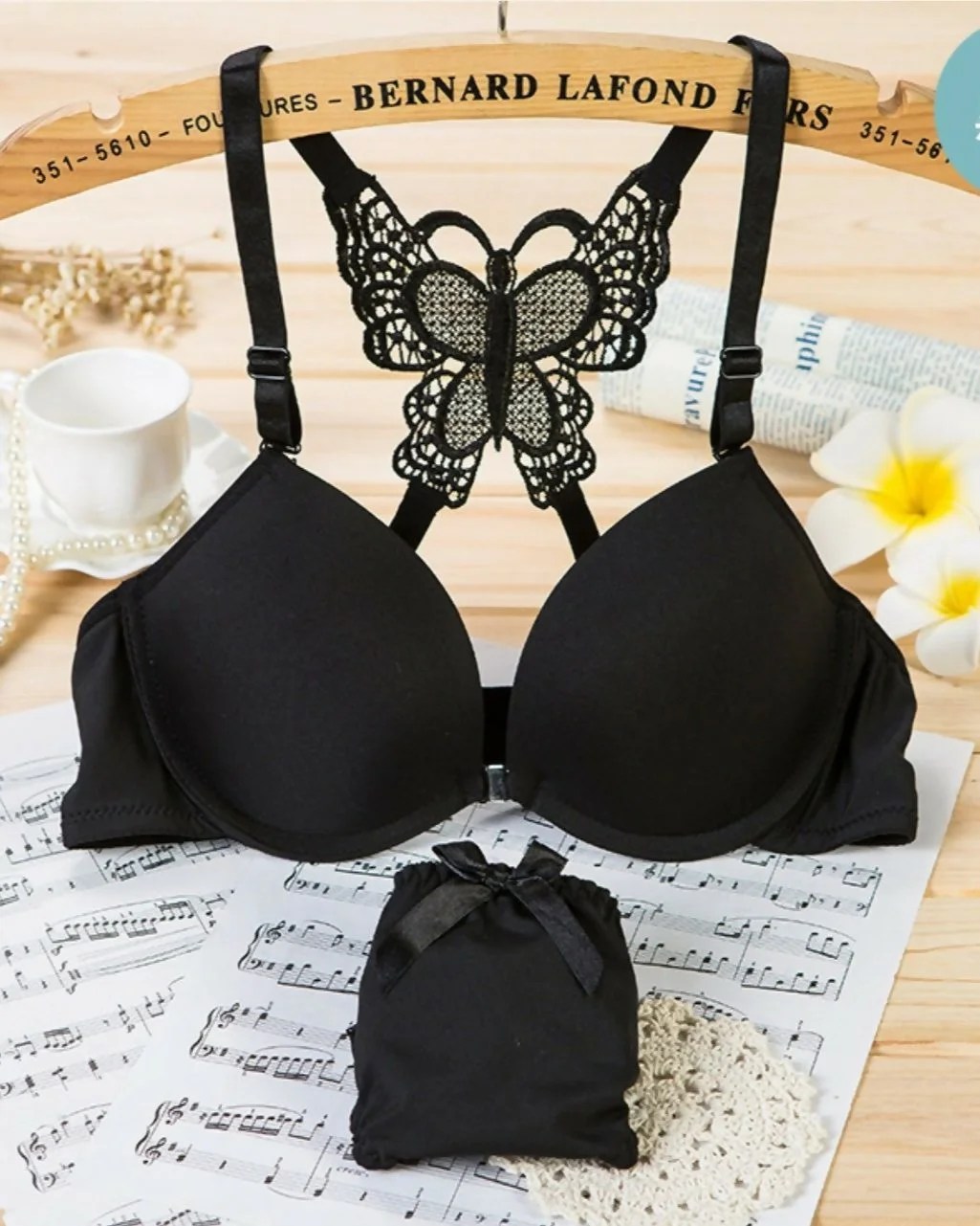 Home China Bra Panty Set Front Open Butterfly Bra Panty Set – Black