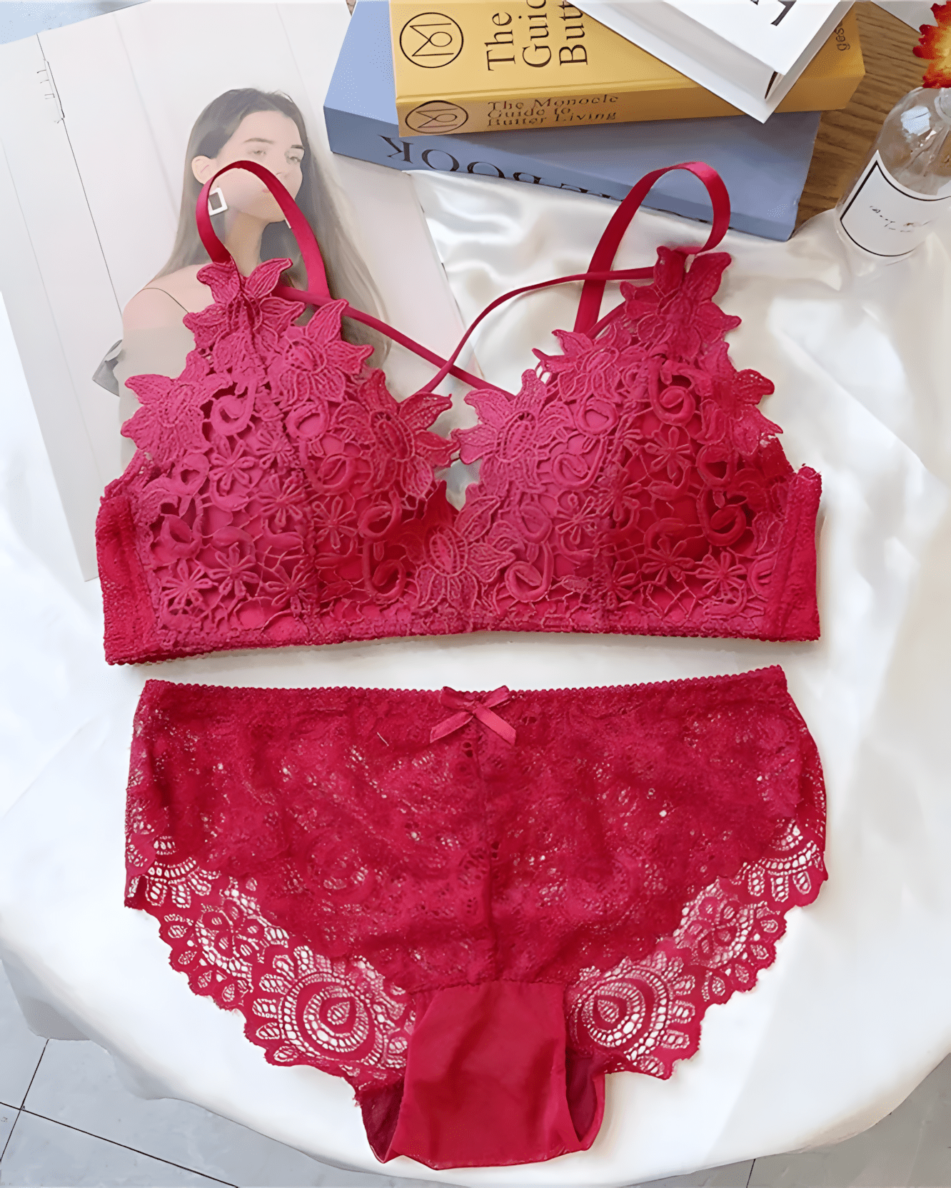Imported Flower Embroided Premium Push Up Bra & Panty Set – Bold Red