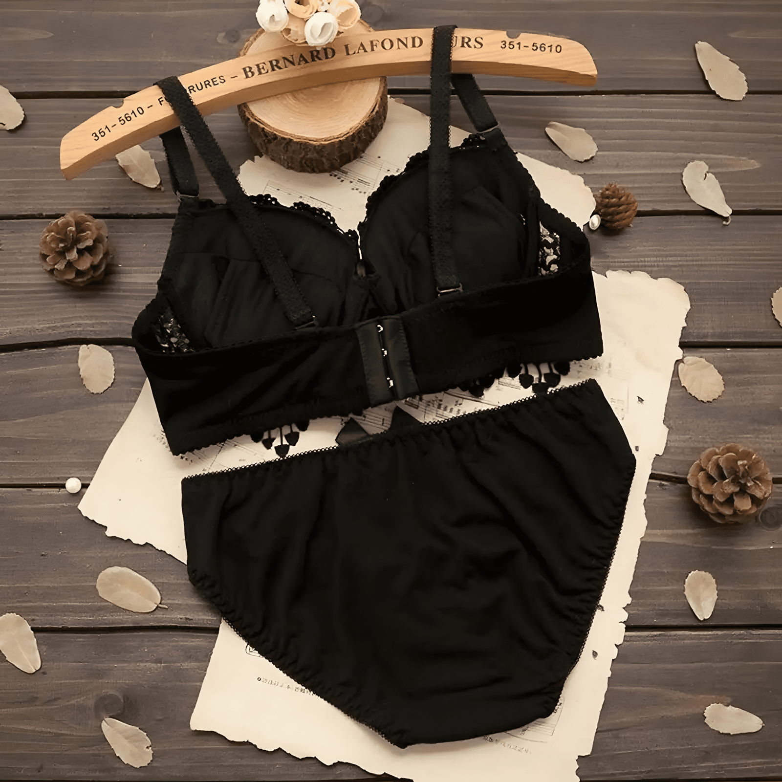 Imported Love Embroided Premium Push Up Bra & Panty Set – Black