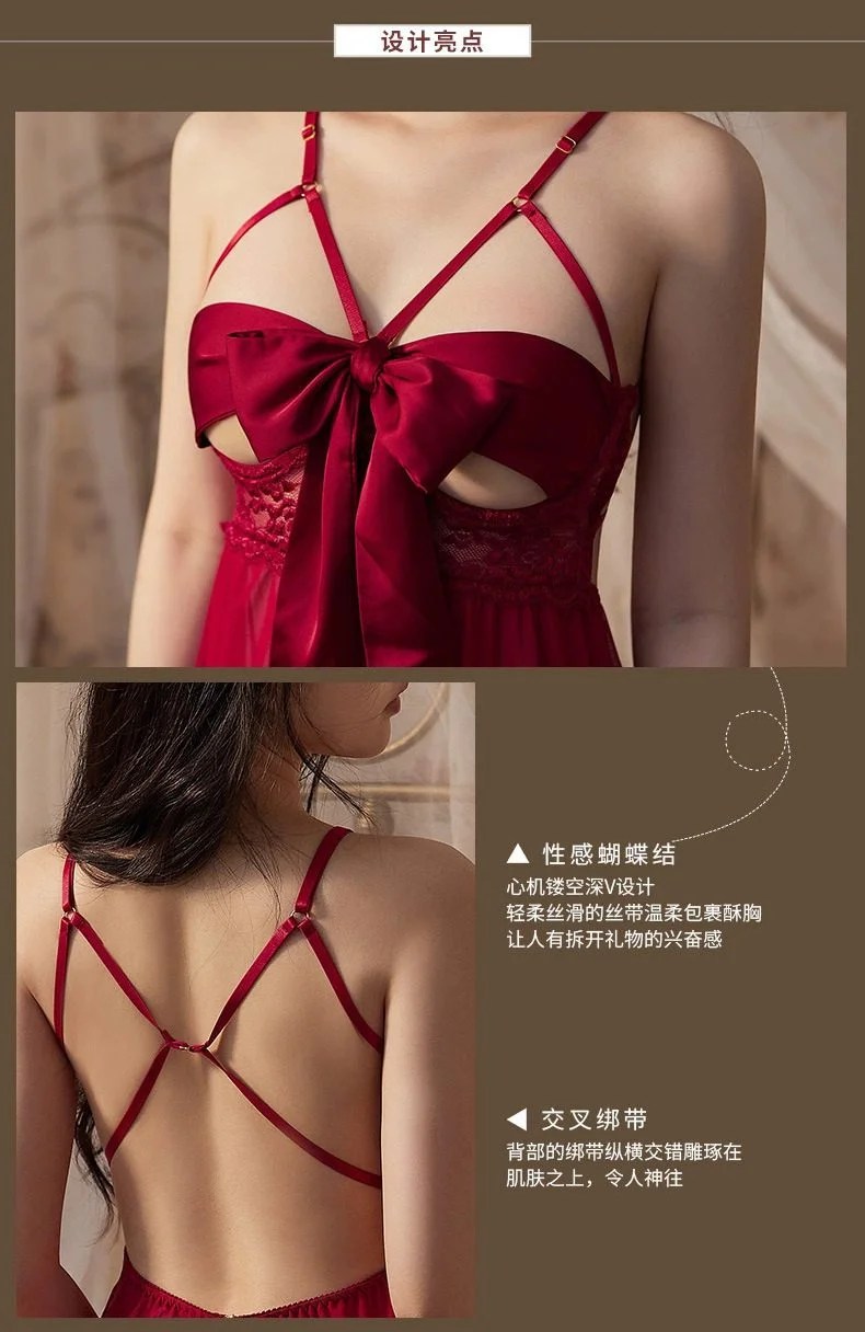 Home Sleepwear & Night Dress Premium Quality Font Opener Night Dress-Red